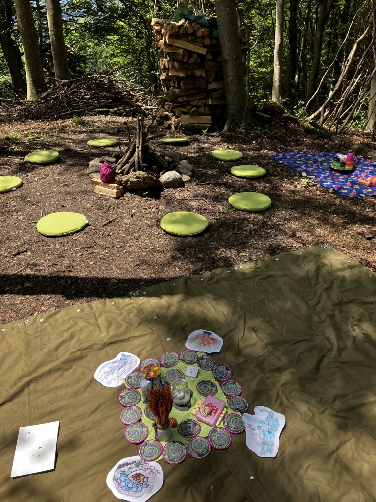Bilder vom Waldnachmittag für trauernde Kinder im Sommer 2024, vom Waldmorgen mit der 2. Primarklasse im Herbst 2024, vom Seminar an der PHZH (Mai 24) und vom Workshop am sina-Kongress (Nov. 24).