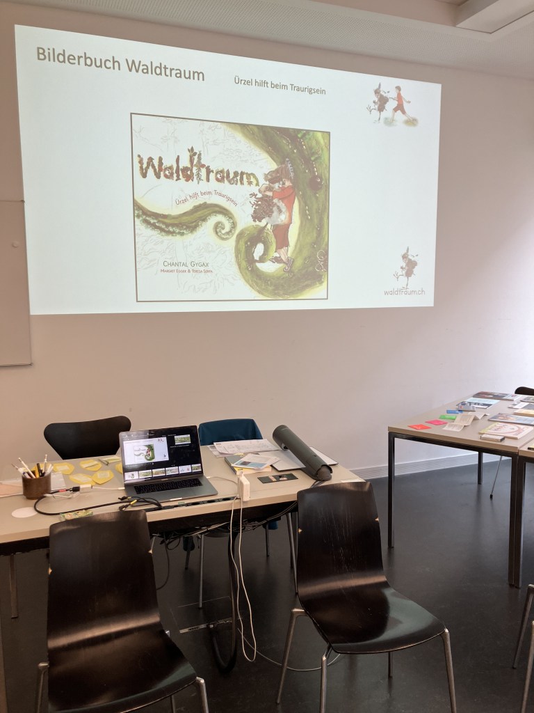 Mit dem Bilderbuch Waldtraum an der PHZH im Seminar „Tod & Trauer im Schulalltag“. Die Geschichte bietet Hilfestellungen, die Trauer auf verschiedenen Ebenen wahrzunehmen.